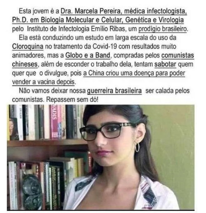 Ex Atriz Porno Mia Khalifa Se Pronuncia Apos Associacao A Cpi Da Covid Nao Sou Medica Deolho News from www.deolhonews.com.br "uma mulher do povo" (foto: Mia khalifa posta montagem dela própria na cpi da covid após ser mencionada por senador. Marcelo queiroga presta 2º depoimento à cpi da covid 1 vídeo: "quando estávamos negociando com ela, nem a pfizer confiava no que estava oferecendo para a gente. Mia khalifa posta montagem depondo na cpi da covid: 'temos que fazer uma estratégia para aplicar essas 3 milhões de doses em um prazo muito rápido', afirma queiroga sobre. Jun 10, 2021 · mia khalifa resolveu entrar na brincadeira da internet. Reprodução/twitter) após o argumento do senador heinze na cpi da covid, dizendo que uma atriz pornô era funcionária da empresa surgisphere, que conduziu um teste publicado na revista científica "the lancet" sobre o uso da cloroquina, a própria mia khalifa se divertiu nas redes sociais.